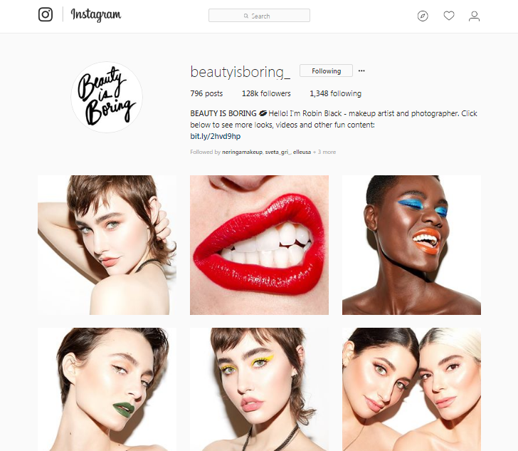 Profesionali makiažo meistrė ir fotografė, savo klientų sąraše turinti tokias žvaigdes, kaip Eva Mendes, Olivia Wilde ir dirbanti su „Voque“, „Harper’s Bazaar“, „Marie Claire“ ir daugybę kitų prestižinių žurnalų. Savo grožio sampratą Robin atskleidžia itin preciziškais makiažais ir estetiškai patraukliomis nuotraukomis, todėl sek „Beauty is boring“ kanalus, jei esi subtilaus makiažo su cinkeliu gerbėja ir tiesiog dievini tobulą estetiką.